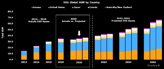 1. 受美国市场推动,2022年ESG资产规模将达到41万亿美元