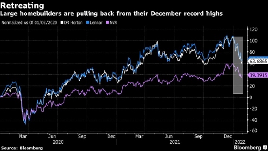 随着利率担忧成为焦点,这种情况发生了变化。现在,自大流行袭击并吓坏了投资者以来,这些股票的跌幅最大,标准普尔超级复合住宅建筑指数 1 月份下跌超过 16%,是自 2020 年 3 月下跌 38% 以来的最差月度表现。