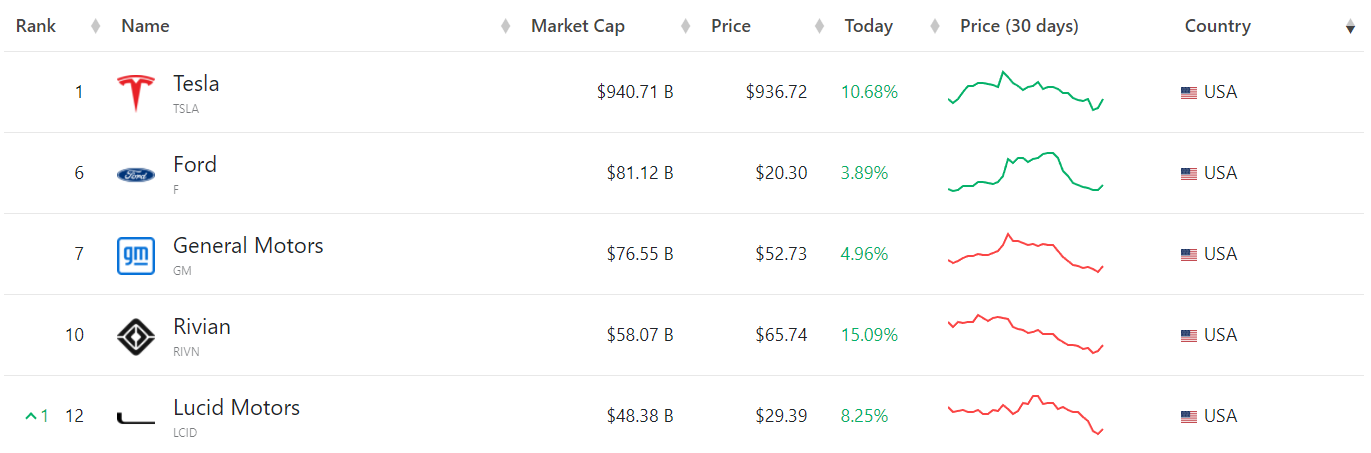 特斯拉周一的强劲反弹还带动了其他电动汽车制造商,Rivian涨超15%,Lucid涨超8%。有电动车生产计划的传统制造商福特和通用也分别上涨4..89%4.96%。