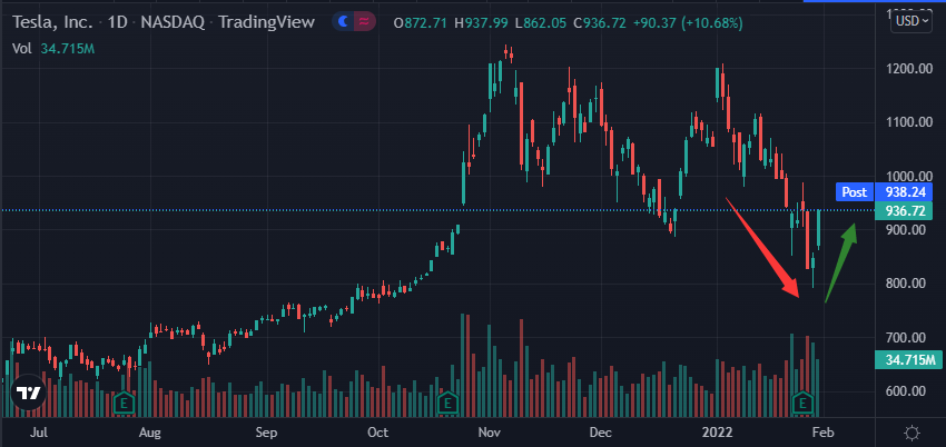 因此特斯拉的股票一度在1月累计下跌近20%,成为拖累纳斯达克综合指数的一个因素。就在这时,瑞士信贷看到了一个绝佳买入机会,该行对特斯拉股票的最新目标价为1025美元。(特斯拉周一收报每股936.72美元)
