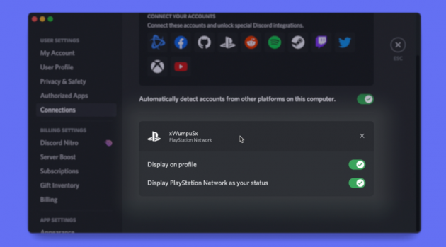 用户甚至可以选择在个人资料中显示 PlayStation Network 在线 ID,以便 Discord 朋友可以添加并标记。