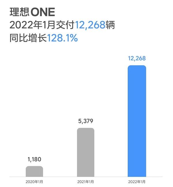 理想汽车1月交付12,268辆理想ONE,同比2021年1月增长128.1%。自交付以来,理想ONE累计交付量已达136,356辆。