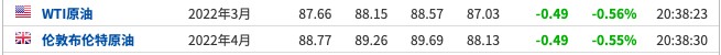 3.截至发稿,WTI原油跌0.56%,报87.66美元/桶。布伦特原油跌0.55%,报88.77美元/桶。