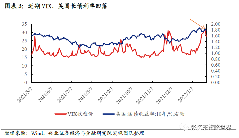 美股符合预判,确认短期底。美国长债利率回落;VIX在0128的收盘为27.66,较0124盘中最高值38.94明显回落;FOMC没有超预期更鹰派。