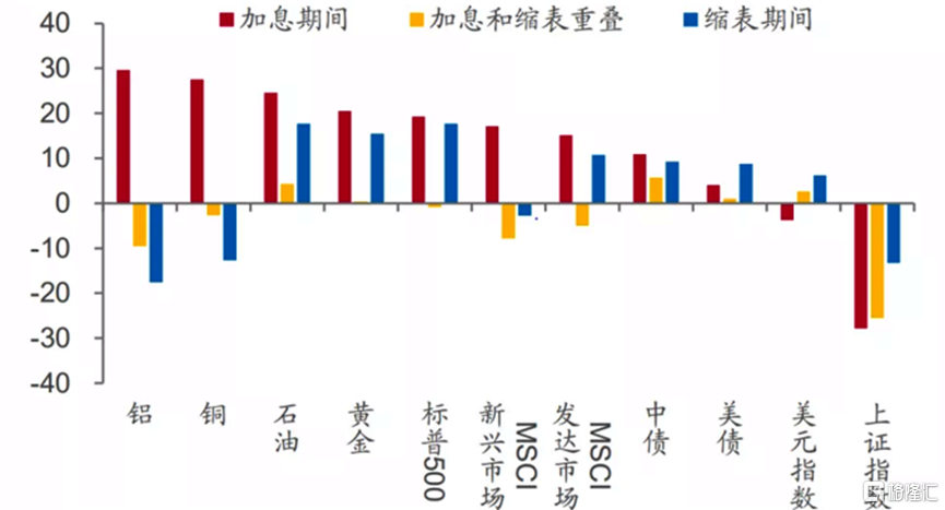 美联储2015-18年加息-缩表期间商品与证券的表现