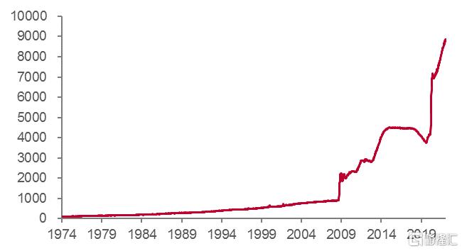 截至2022年1月26日,美联储的资产负债表规模达到8.86万亿美元,即在过去40多年中,扩张了近90倍,远超资产及商品价格的涨幅。