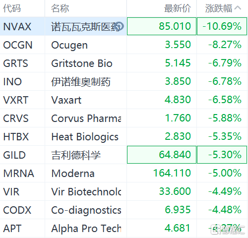 格隆汇2月3日丨诺瓦瓦克斯医药跌10.7%、Ocugen跌8.3%,伊诺维奥制药、Vaxart、Gritstone Bio跌超6%,吉利德科学跌5%,创两个月新低,Moderna亦跌5%。