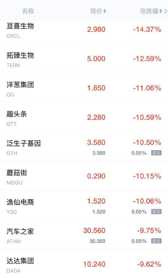 (截图来自新浪财经APP 行情-美股-中概股热门板块)下载新浪财经APP