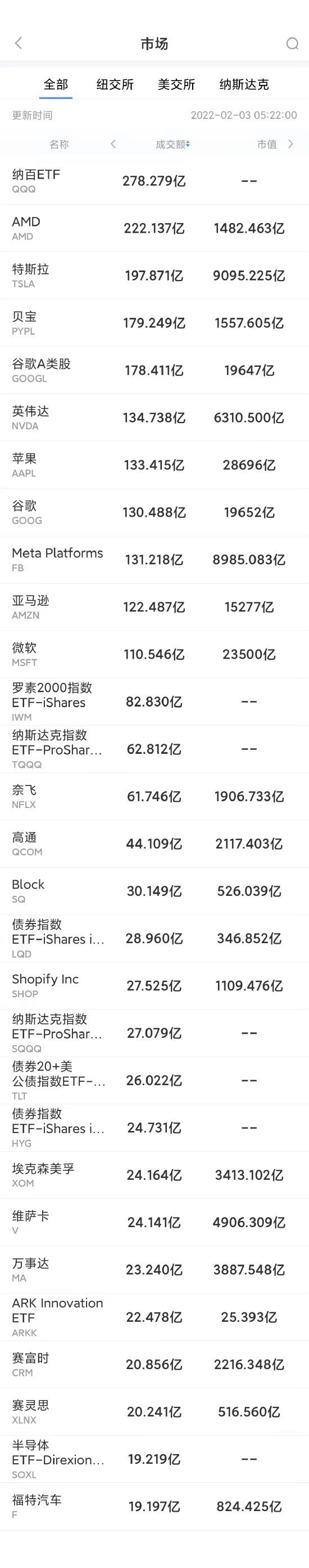 以下为美股当日交易最活跃的20只股票(按成交额):