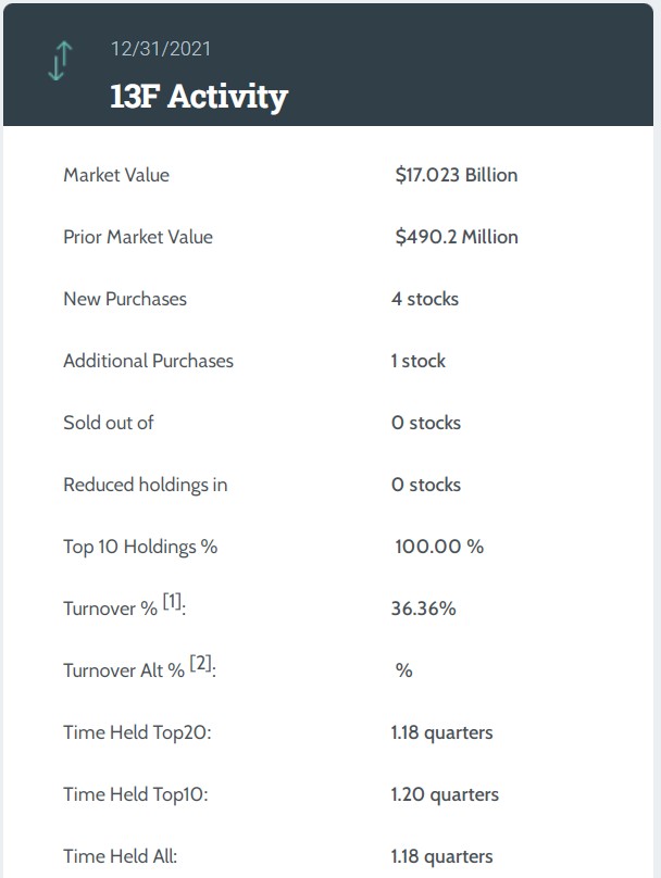 根据美国证监会(SEC)披露,亚马逊(AMZN.US)递交了截止至2021年12月31日的四季度美股持仓报告(13F)。