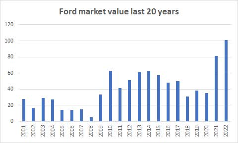 从历史上看,您可以看到福特的MV在50亿美元到1000亿美元之间变化很大,它的价格具有相当大的弹性。