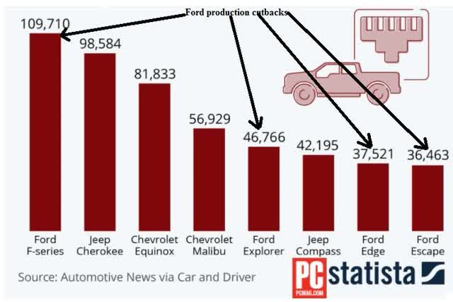 首先是不利的因素,1月18日,福特宣布因芯片短缺而关闭另一家工厂。对于福特来说,这个问题比其他公司更严重,因为他们在没有备用芯片的情况下,芯片应急方案计划不周,特别是对于F-150 EV的需求上升时。这意味着他们无法满足市场需求,从而扩大市场份额,只能将机会拱手让给竞争对手们。