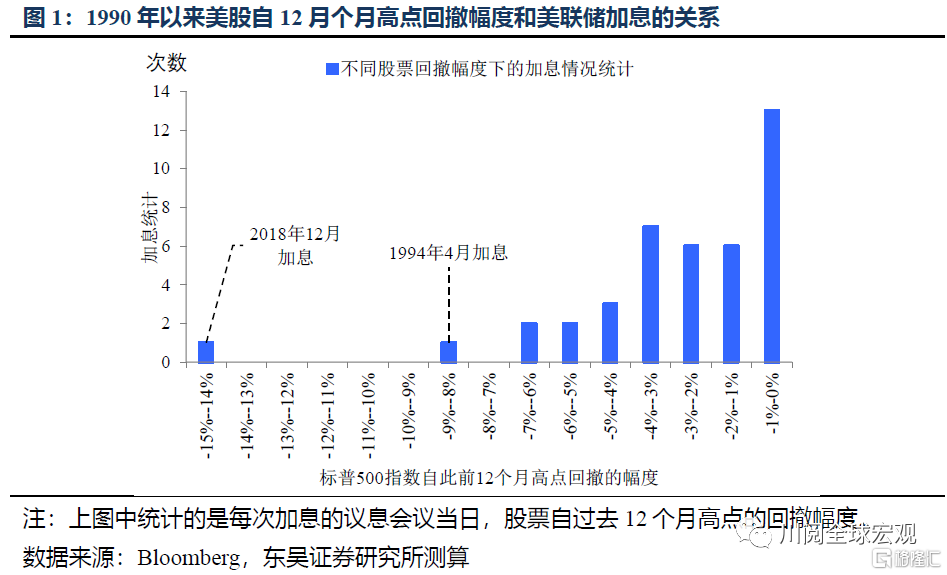 2018年1月至2月:2018年1月底至2月初的美股大跌重要背景是美联储“进一步”加息的鹰派措辞叠加2月2日公布非农数据大超预期,美股下跌的低点出现在2月初,但整体跌势一直持续到3月底。在3月21日议息会议上美联储明显偏鸽。并未上调点阵图和释放年内加息4次的信号,直到股市稳住后的6月会议才上调利率预测路径。