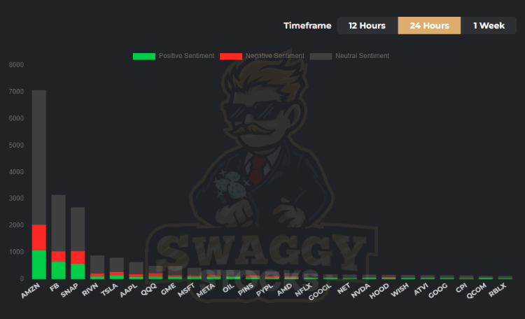 WallStreetBets社区热股排行:目前亚马逊(AMZN)热度排行首位,其次为Meta Platforms(FB)、Snap(SNAP)、Rivian(RIVN)、特斯拉(TSLA)。