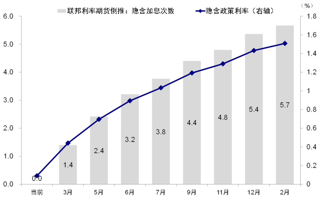 此外,市场对于美联储紧缩的预期也有所升温。1月FOMC会议基本给出了3月加息的明确信号,同时暗示缩表可能很快到来(例如3月FOMC会议上给出具体缩表路径),但是鲍威尔在新闻发布会上有关加息节奏和幅度等关键问题上避而不谈给了市场以“遐想空间”,因此一定程度上又造成了预期的混乱,甚至3月一次加息50bp的预期也无法被完全证伪。