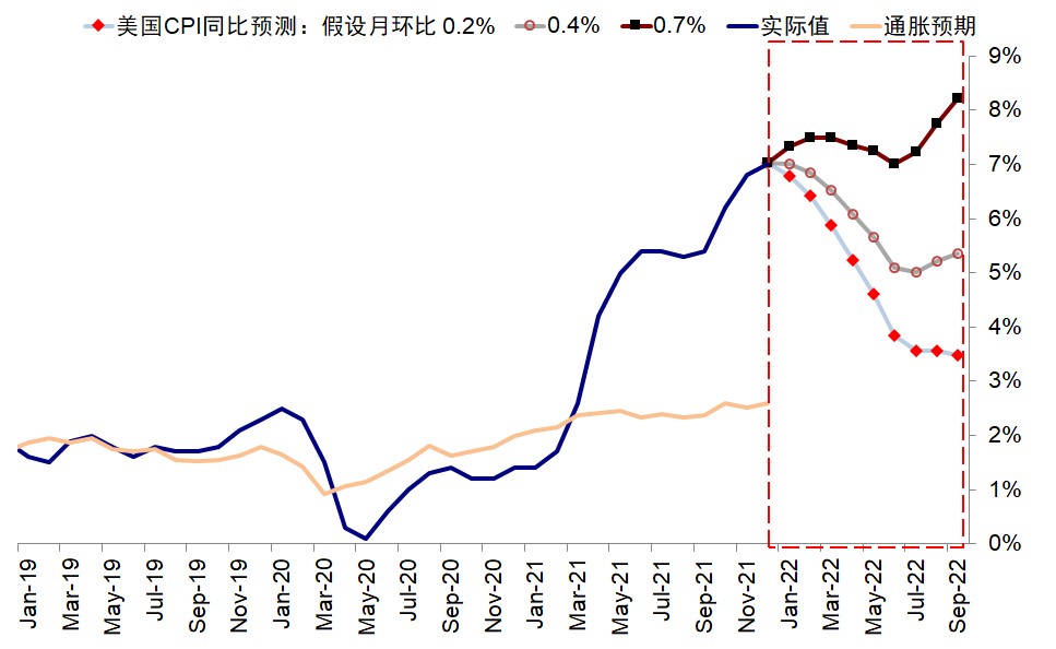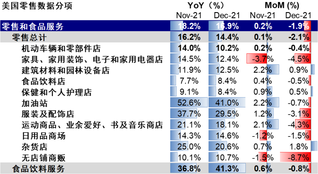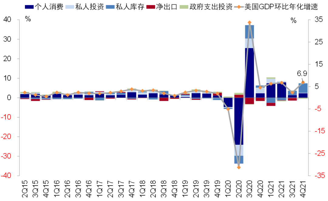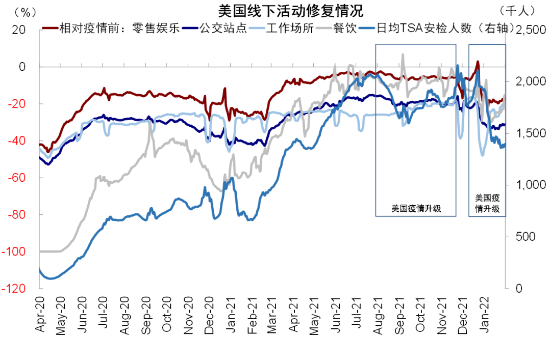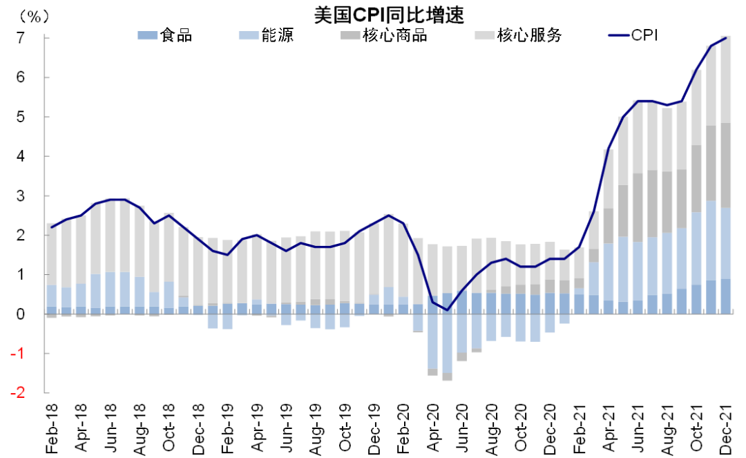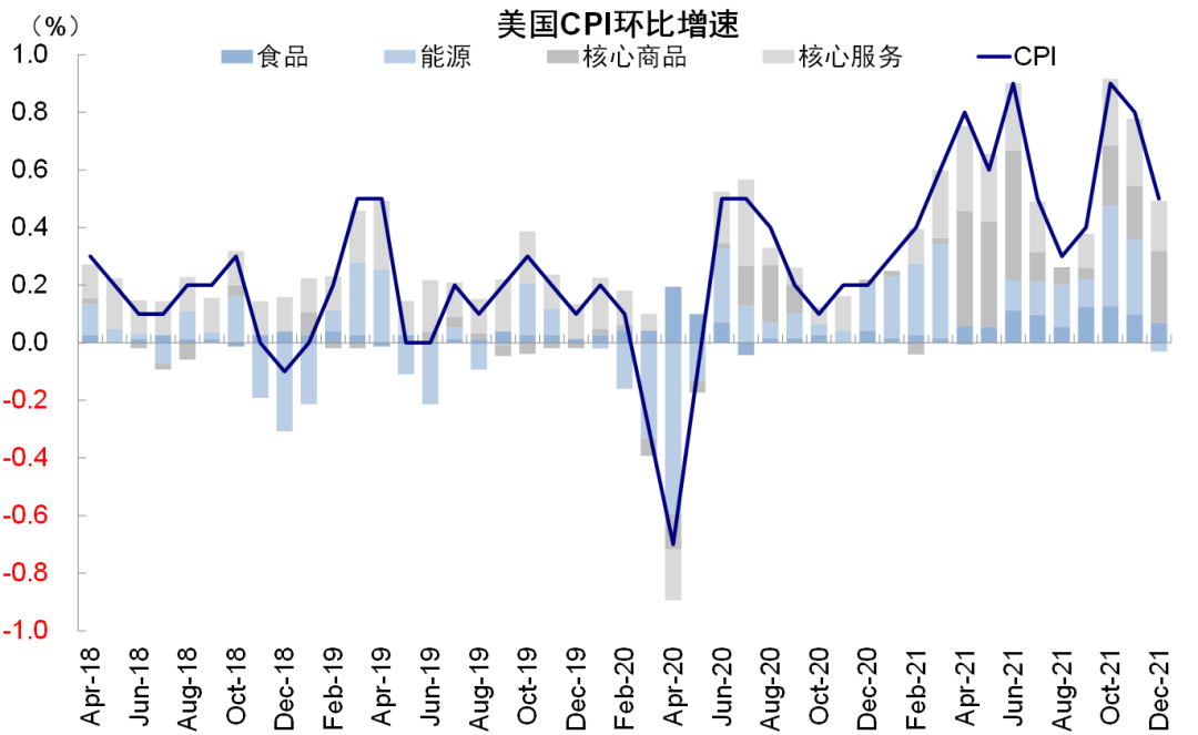 结合目前高频指标、疫情和基数效应看,美国通胀水平中商品端的价格可能逐步筑顶,服务和工资价格如果疫情回落迅速也有可能在一季度末二季度逐步缓和。潜在风险来自于疫情的反复以及地缘风险导致的油价再创新高。