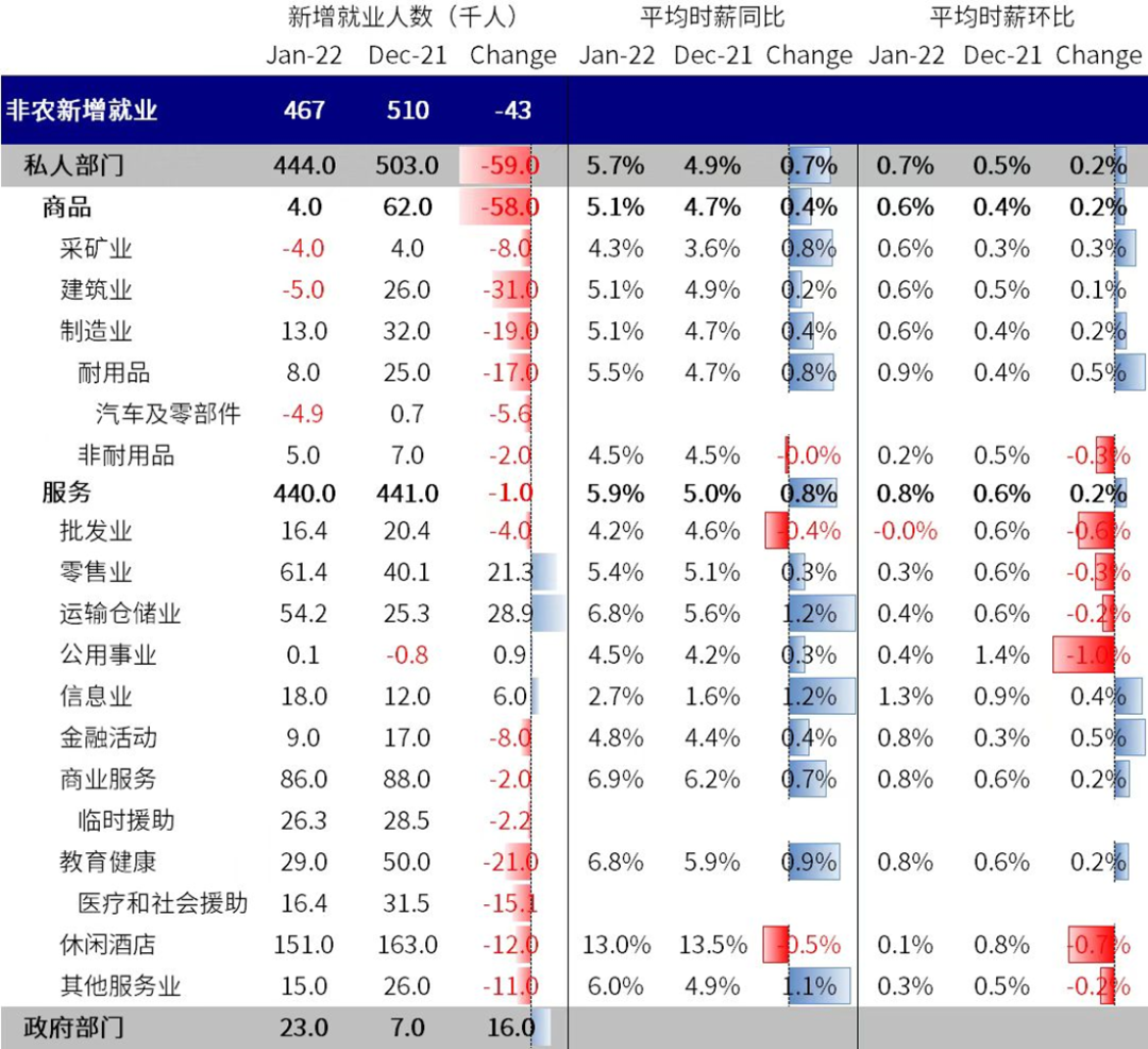4)就业超预期修复:零售、交运和酒店休闲就业超预期修复,同时劳动参与率也在增加。尽管工资增速依然较高,但在疫情改善的背景下,虽然一些结构性因素(如提前退休和金融资产较多)仍会使得就业的修复需要时间,但在疫情整体改善背景下,受疫情影响的部分就业修复也是可以期待的。