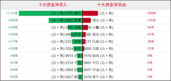 淡仓(认沽证及熊证)方面,上周五腾讯相关淡仓单日录得约1,112万港元资金净流入,汇丰、美团、阿里等相关淡仓亦录得少量资金净流入;相反,个股相关淡仓净流出资金规模普遍相对偏小。