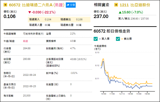 2、看错方向:比迪瑞通二六熊(60572.HK),上周五下跌22.1%。