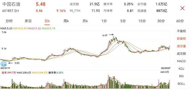 值得一提的是,石油板块走强下,中国石油股价罕见收涨超9%,总市值重回万亿元,带动沪指上扬。