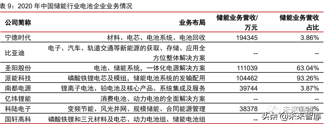 1) 储能电池:头部技术领先,动力电池企业渐多。