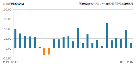 与此同时,南向资金也不断加仓港股,截至2月7日收盘,南向资金持续17个交易日净买入港股,本年净买额达452.22亿,较北向资金净买额翻倍。