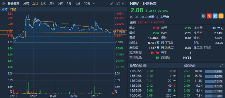 朴新教育盘前涨超8%,公司于2月4日宣布,正在评估通过进入中国的快餐连锁餐厅业务来扩展其现有业务的机会,并预计将通过在公司朴新学校周围或内部开设新门店来改善客流。据悉,朴新教育还提到,无法保证该公司将在指定行业完成交易。