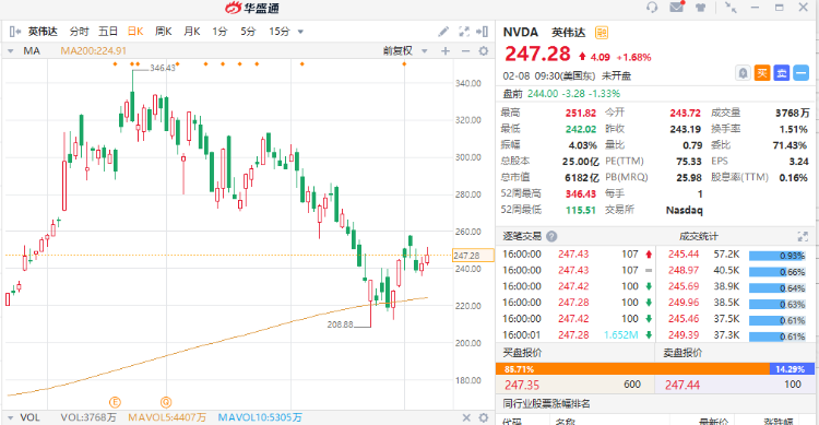 TipRanks整理了过去三个月里25位分析师对英伟达的预测,目标价均值为357.95美元。雅虎财经使用Refinitiv的分析师估计,整理了42位分析师对英伟达的预测,目标价均值为340.82美元。