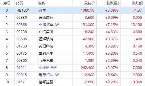 华盛资讯2月9日讯,港股汽车概念股快速拉升,小鹏汽车涨超7%,广汽集团涨超4%,理想汽车和比亚迪股份皆涨超2%。