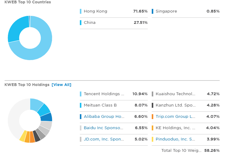 中金公司旗下的金瑞基金发行的 $KWEB 为美国最大中国股票ETF,规模高达72.5亿美元。其中,持仓港股的比重达71.65%,并且前十大重仓股皆为中国市值较大的互联网企业。进入2022年,KWEB继续吸金,截至2月5日,KWEB已经吸引了超过9亿美元资金净流入。