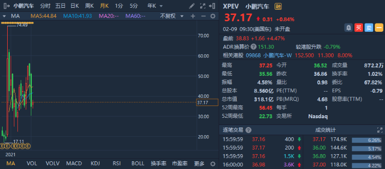 华盛资讯2月9日消息,今日美股盘前,小鹏汽车涨超6%,小鹏汽车港股今日涨8%,此前获纳入深港通下的港股通股票名单。截至发稿,小鹏汽车涨超4%。