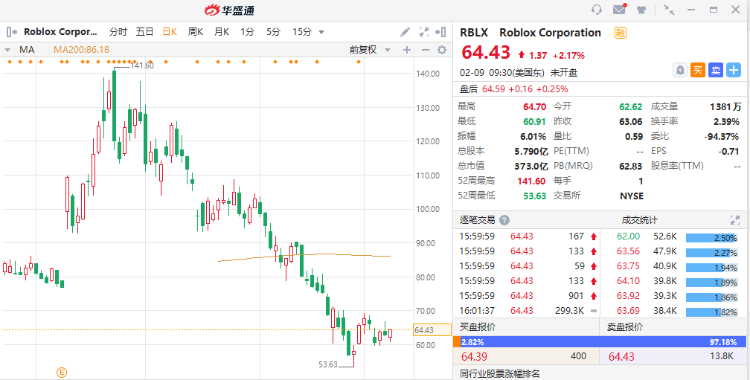 目标价方面,据彭博,目前分析师对Roblox未来12个月内的目标价预测为111.62美元。