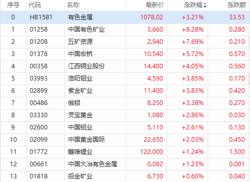 中信证券研报指出,铝价创出2008年以来新高,供应端扰动短期无法消除,铝价涨势有望持续。低库存效应和需求回暖预期下,铜价有望随着阶段性货币政策预期落地重拾涨势。推荐电解铝涨价的弹性标的和具备成长性的铜矿标的。推荐紫金矿业和洛阳钼业,建议关注中国铝业和中国有色矿业。