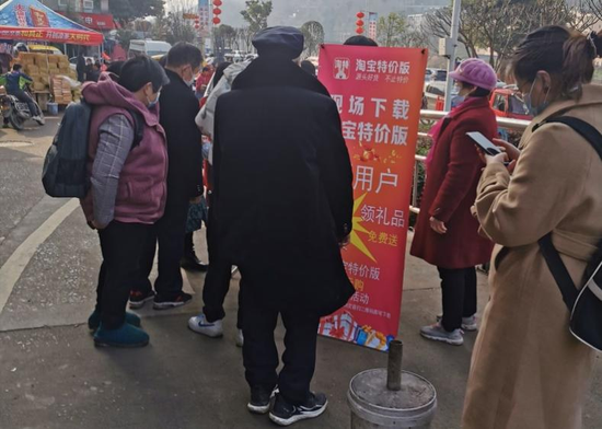距离除夕仅有两天,这往往也是小镇一年中最热闹、人流最大的时候。“春节期间是一个重要的窗口,大家都回家过年了,人流量很大。”杨平说。对于推广口径,据他反映主要包括“淘宝下面新做的一个App” “平台东西很便宜” 等,另外再送点洗衣液、春联等小礼品,便有一群大爷大妈围着他们下载。