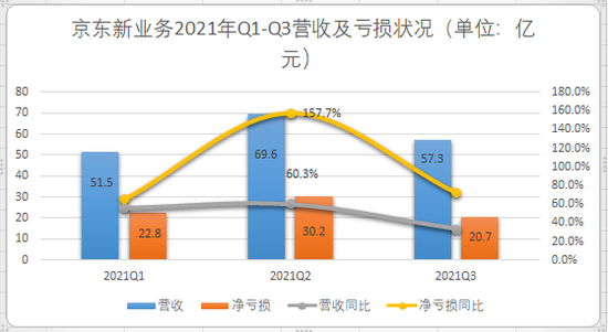 据财报数据显示,纵观去年Q1-Q3季度,京东新业务始终处于亏损状态。虽然在去年二季度京东新业务营收69.6亿元,同比增速达60.3%,但同时净亏损也再不断扩大,同比增速更是高达157.7%。另外,随着社区团购业务的收缩,去年三季度亏损有所减少,但营收同步缩减。