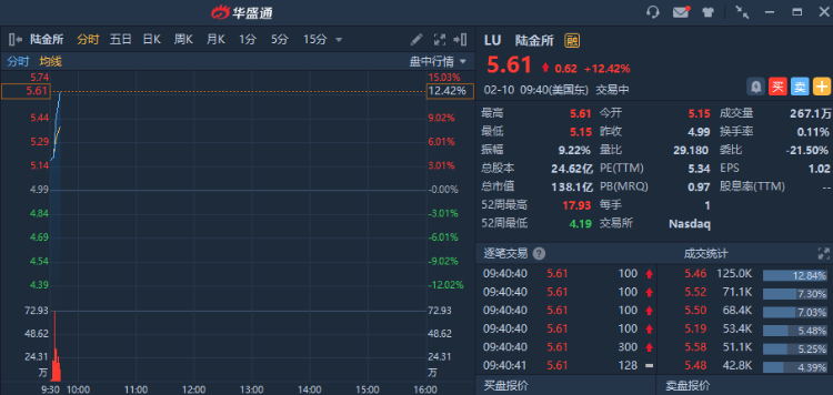华盛资讯2月10日消息,美股盘初,中概股多数下跌,截止发稿,陆金所 $LU 逆市涨超12%领跑中概股,小鹏汽车 $XPEV 、理想汽车 $LI 、雾芯科技 $RLX 跌超3%,京东 $JD 、哔哩哔哩 $BILI 跌超2%。