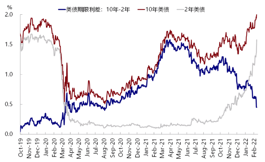 2)短端利率由于受货币政策影响更大所以反应更加直接,1年和2年期国债跃升25bp,也基本对应上述3月加息50bp的预期。