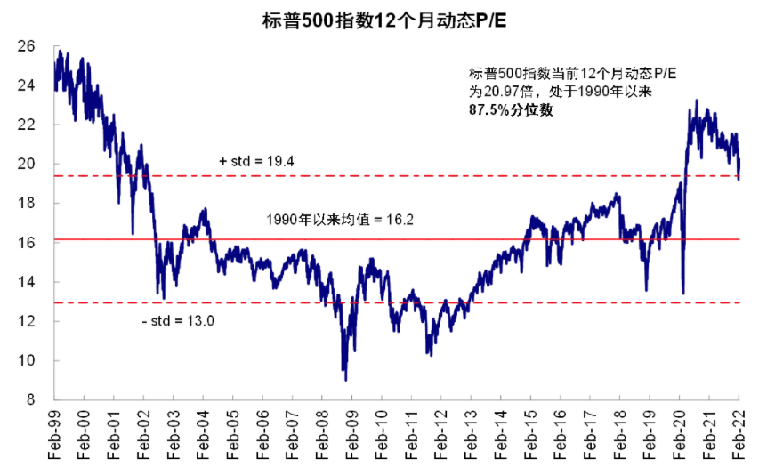 叠加美股估值基本回到2019年疫情前、与当前估值流动性环境基本匹配,这也是为什么我们在1月FOMC会议后表示,经历了1月初因为「缩表恐慌」的大跌后,市场估值已经基本计入了大部分紧缩预期,因此市场最大的波动可能暂告段落,近期得以反弹修复。