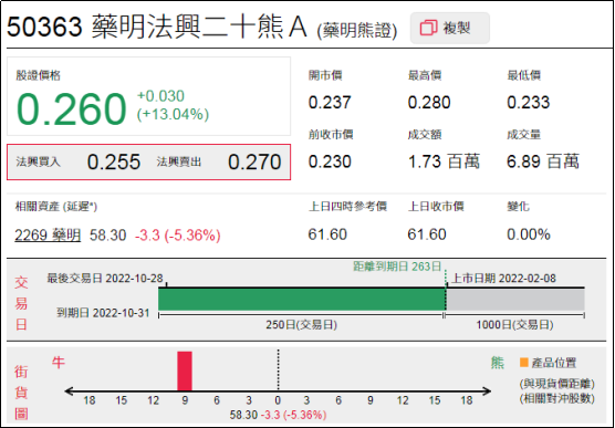 1、强势轮证:药明法兴二十熊(50363.HK),周四上涨13.04%;