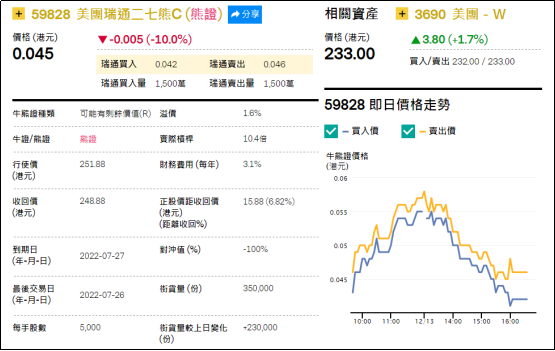 2、看错方向:美团瑞通二七熊(59828.HK),周四下跌10.0%。