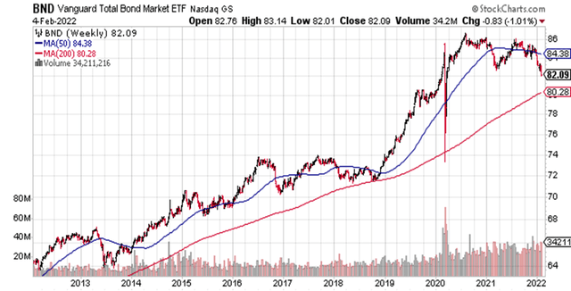 Vanguard Total Bond Market ETF(BND)目前在技术形态上排名第三,并开始翻转。