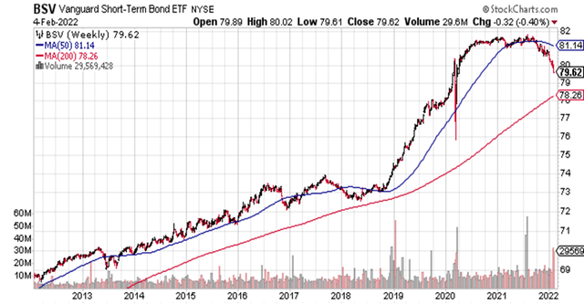 先锋短期债券ETF 也在做同样的事情。这对债券基金来说不是一个好环境。它们未来还有更大的下行风险。如果你想要债券市场的相对安全,你需要计划持有你的债券至到期,债券基金就会受到伤害。