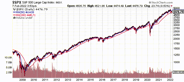 如果美联储加息过度,市场将面临大量下行风险。好消息是,12年的牛市目前仍然完好无损。如果你不相信我,看看下面标普500指数的图表。