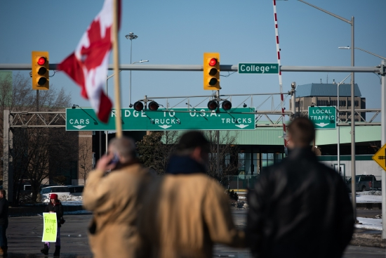 从安大略省温莎通往美国底特律的大使桥自周一晚上以来基本处于关闭状态。通过该座桥梁运输的货物约占加拿大和美国之间商业贸易的四分之一。报道称,抗议者周五上午同意为从底特律到温莎的交通留出一根车道的空间。
