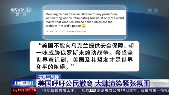 当地时间2月10日举行的、旨在解决乌克兰问题的俄乌法德四方会谈虽然没能取得实际成果,至少表明各方都在为缓和局势而努力。美国反而在不停“拱火”、致力于营造紧张气氛。10日,美国总统拜登再次警告乌克兰境内的美国公民立刻撤离。