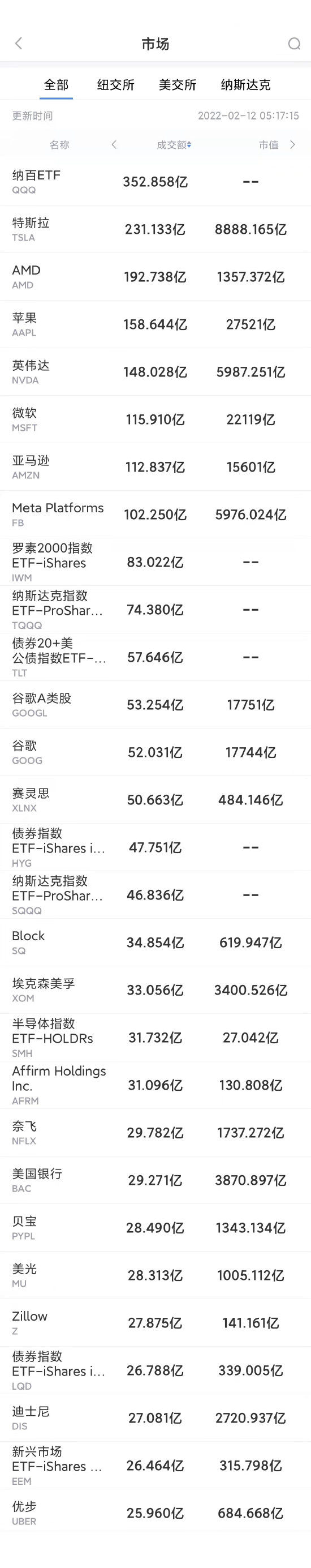 以下为美股当日交易最活跃的20只股票(按成交额):