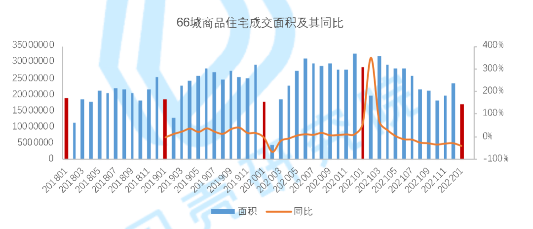 据中指研究院监测,1月50城商品住宅成交面积在2426万平方米左右,同比下降34.1%,降幅扩大。