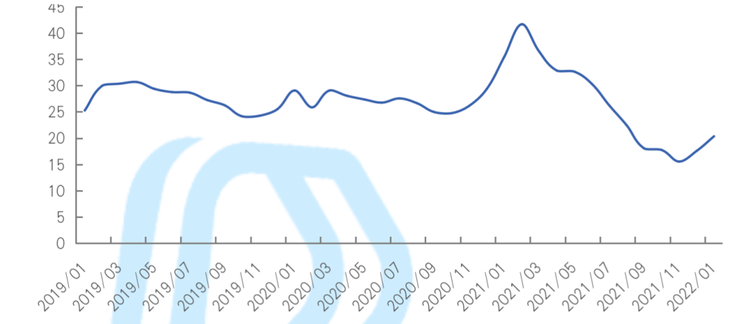 与2021年首月抢跑美元债市不同,由于境内信贷适度宽松,2022年开年,房企债券融资仍以境内债为主,境外债券规模占比仅30%,较2021年同期下降24个百分点。