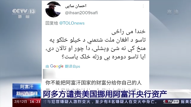 阿富汗临时政府发言人穆罕默德·纳伊姆回应指出,美国此举是在窃取阿富汗人民的财富。