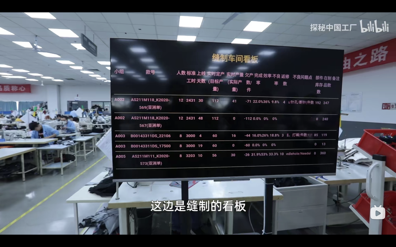 缝制车间看板